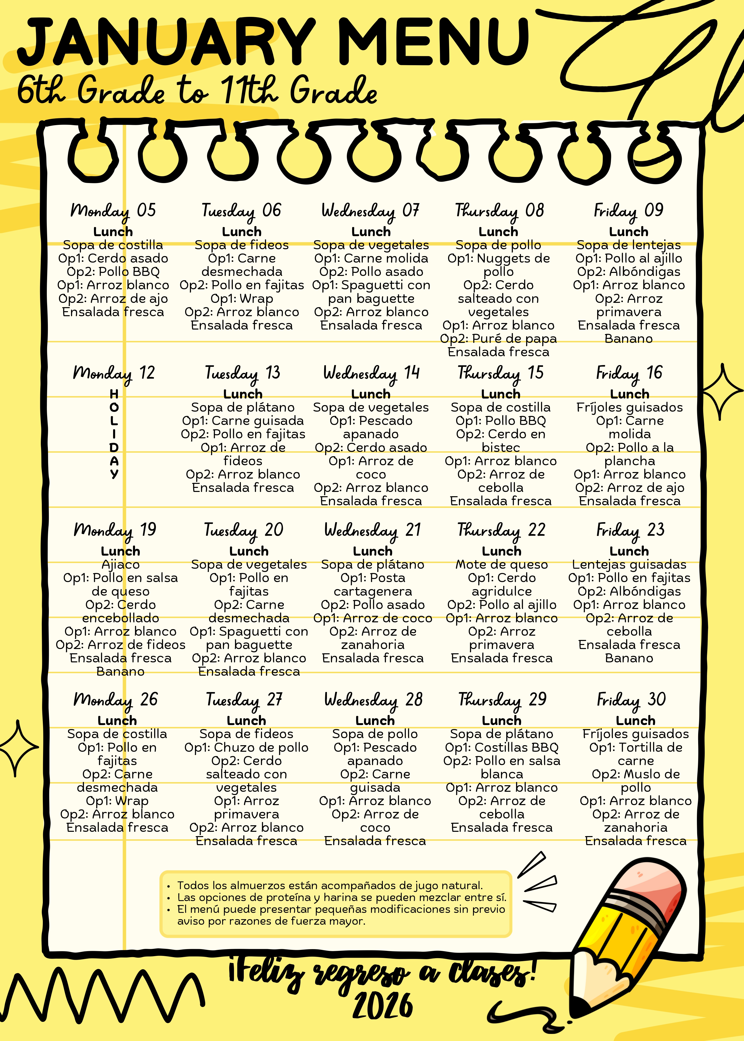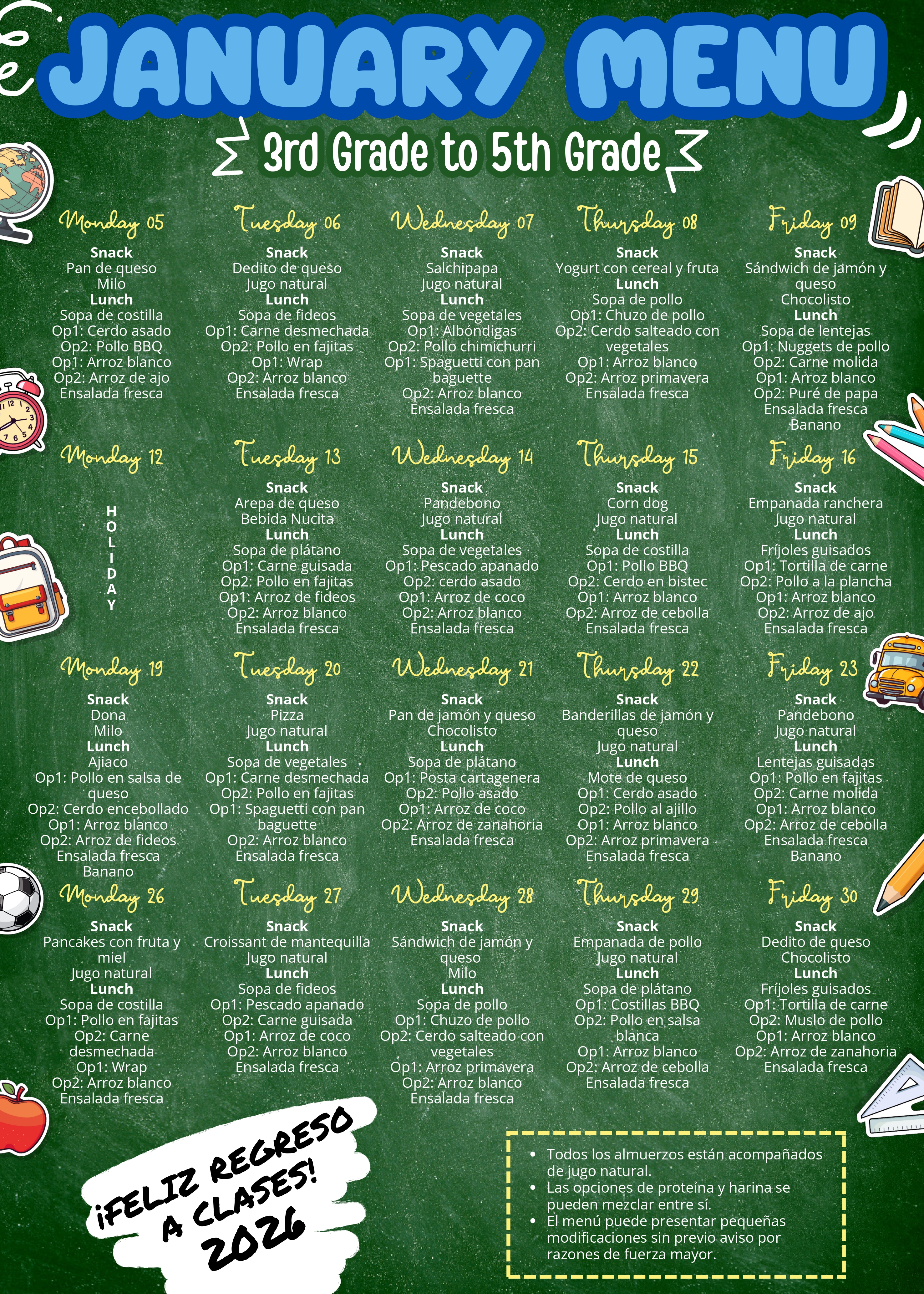 Menú Preescolar, 1º y 2º Menú 3º a 5º Menú 6º a 11º Gramaje de porciones Pago en línea Contáctenos Menú Preescolar, 1º y 2º Menú 3º a 5º Menú 6º a 11º Gramaje de porciones Pago en línea Con los siguientes botones usted podrá hacer los pagos de nuestros servicios de restaurante, solo debe escoger el servicio a pagar, darle clic y se abrirá la página del banco: Contáctenos Síguenos en: Facebook Instagram YouTube Webs amigas: ICFES Interactivo Colombia Aprende Ministerio de Educación Proyectos Discover 1.0 Beta La Concepción News Banco de recursos
